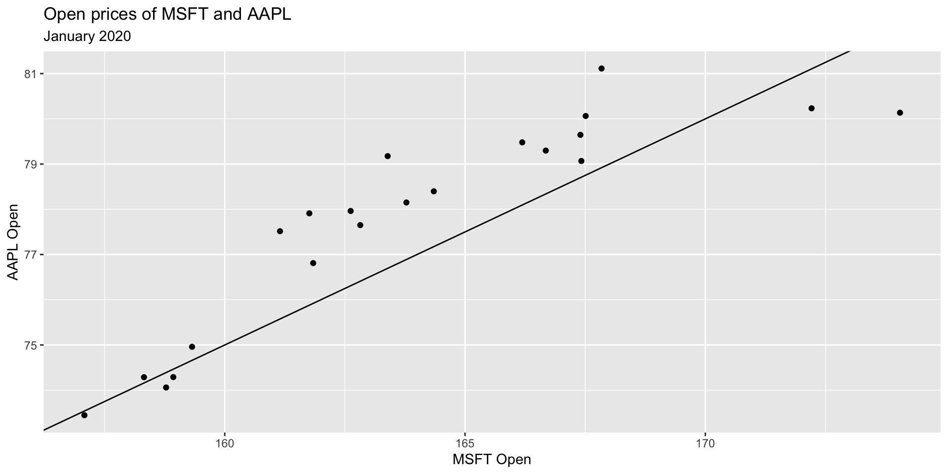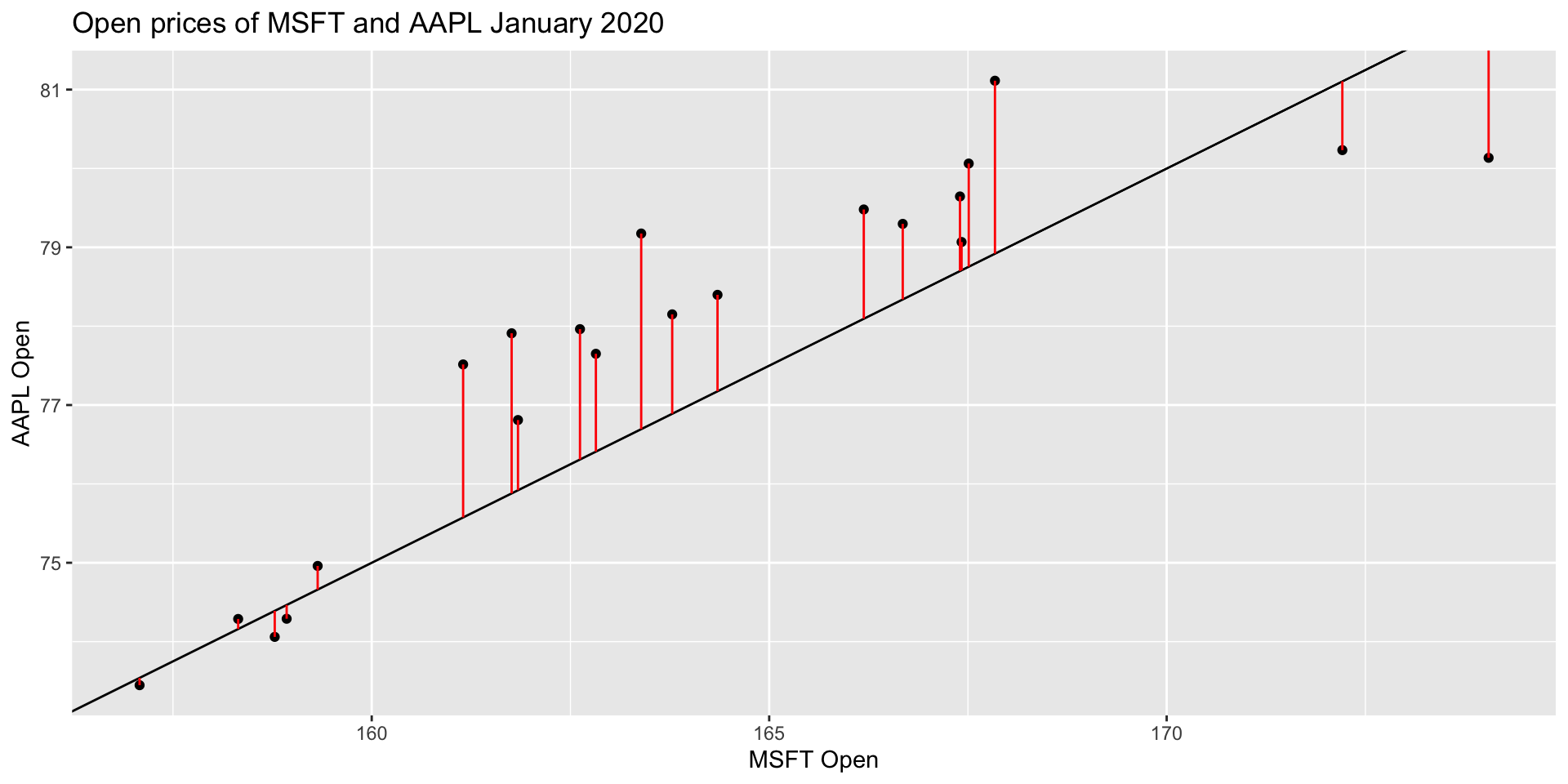 Let’s examine January 2020 open prices of Microsoft and Apple stocks to illustrate some ideas.