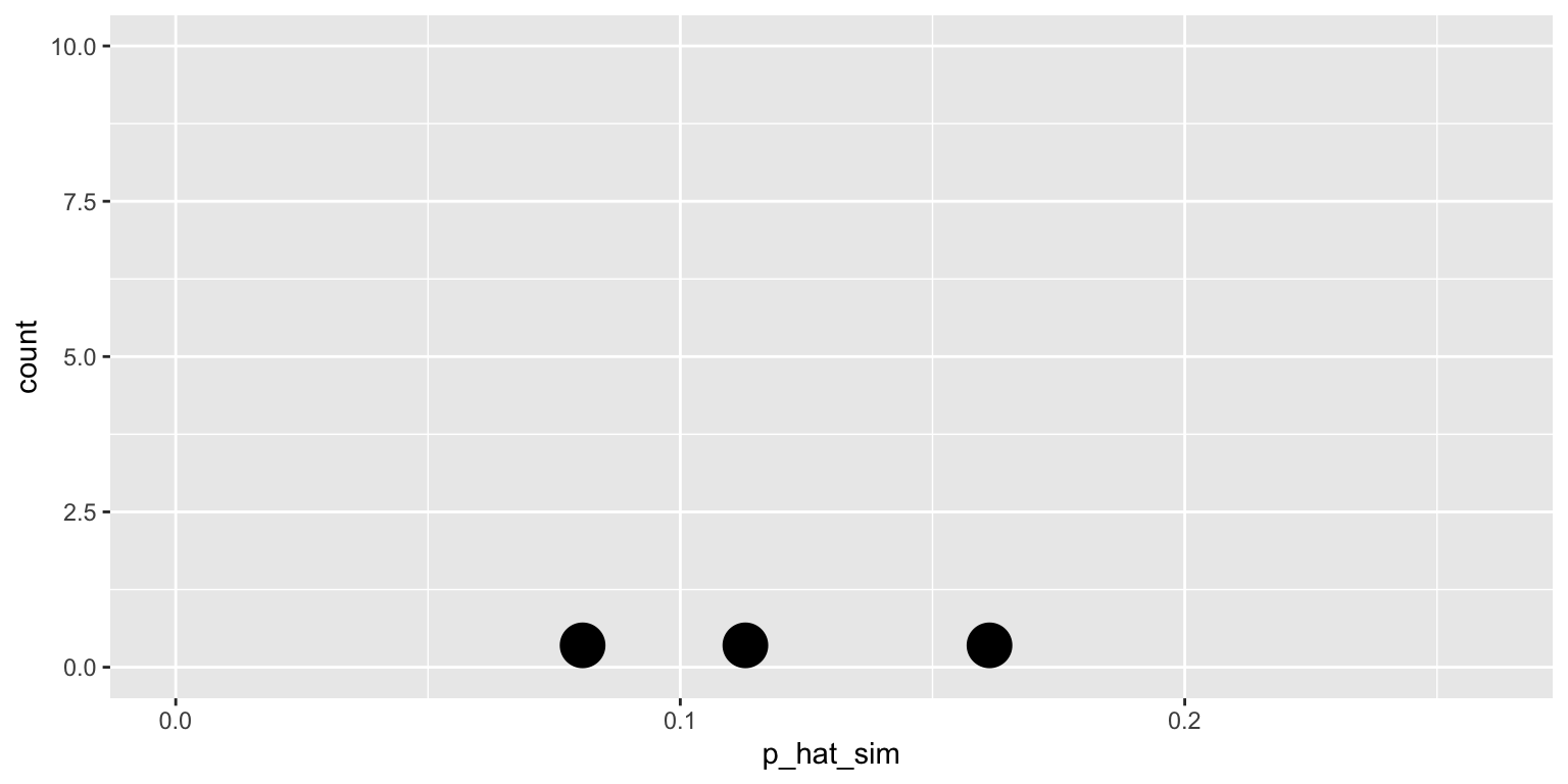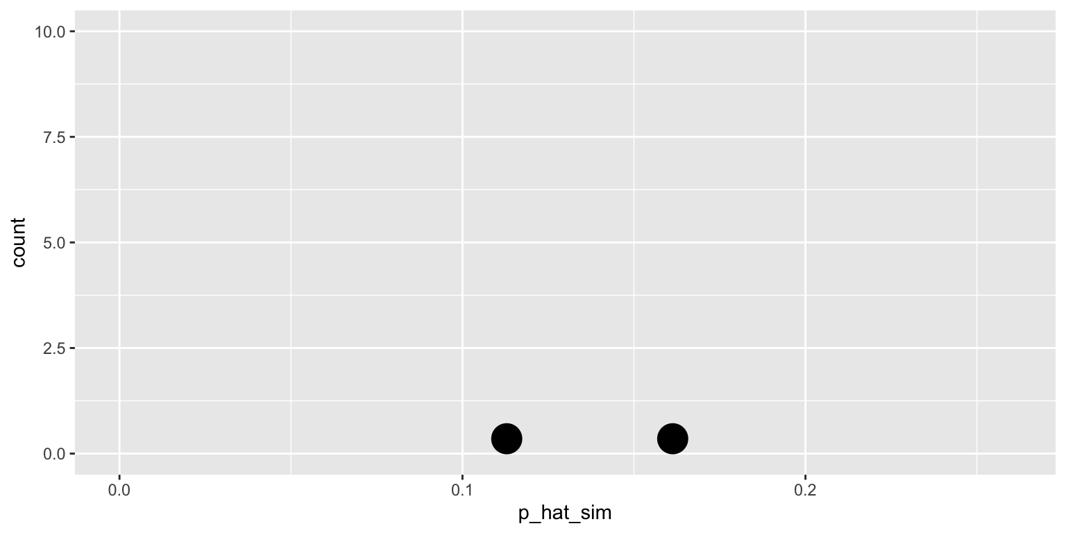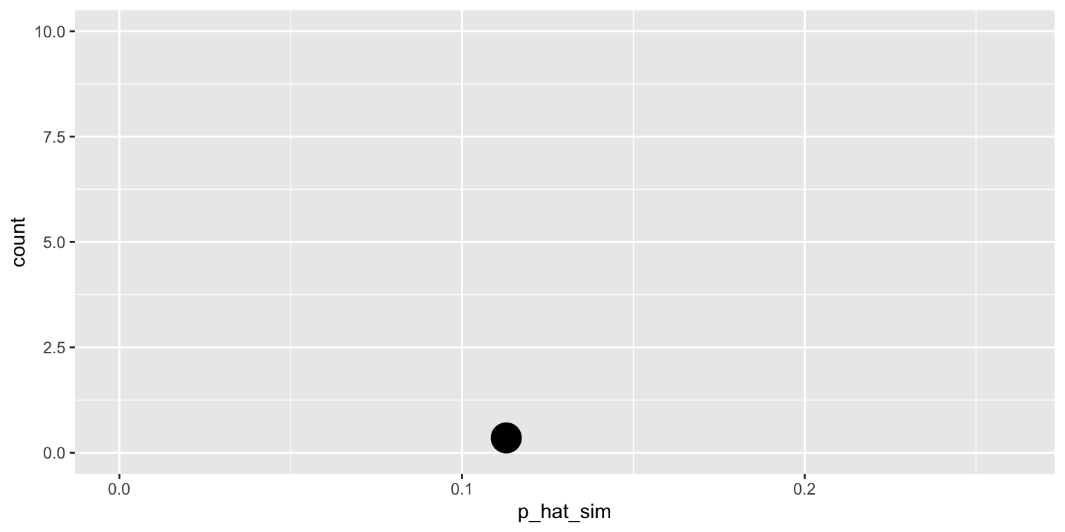 Since \(H_0: p = 0.10\), we need to simulate a null distribution where the probability of success (complication) for each trial (patient) is 0.10.