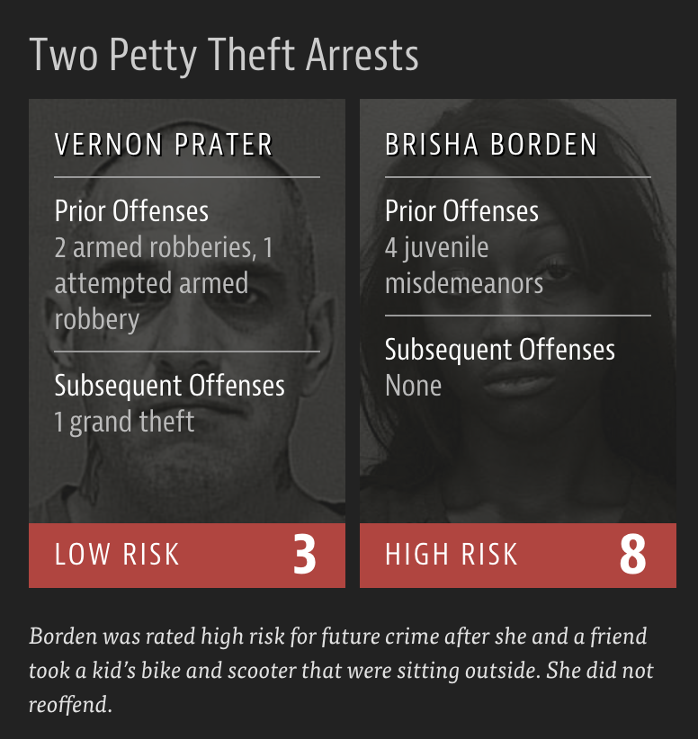 Algorithm was more likely to falsely flag black defendants as future criminals, at almost twice the rate as white defendants